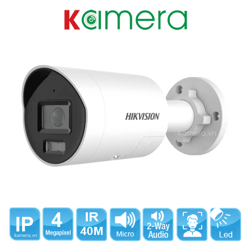 CAMERA HIKVISION DS-2CD2046G2-IU/SL là dòng camera IP thân mới của hãng HIkvision, camera có độ phân giải 4.0MP, Tầm xa quan sát hồng ngoại 40m. Khe cắm thẻ nhớ microroSD 256GB (max). Tích hợp micro, và loa đàm thoại 2 chiều, cảnh báo bằng đèn và giọng nói. Nhận dạng con người/xe cộ. Tiêu chuẩn chống thấm nước và bụi: IP67 (thích hợp sử dụng trong nhà và ngoài trời).