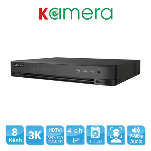 - Tổng số 12 kênh: 8 kênh analog (TVI/CVI/AHD) và 4 kênh IP.