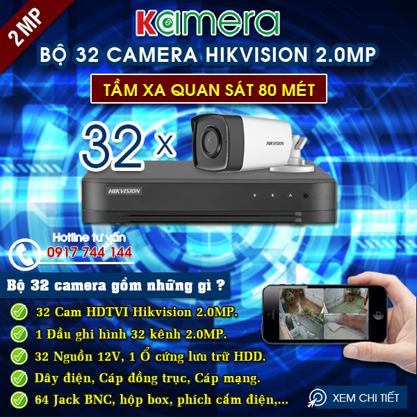 1. Trọn Bộ 32 Camera Hikvision 2.0MP - IR 80 Mét